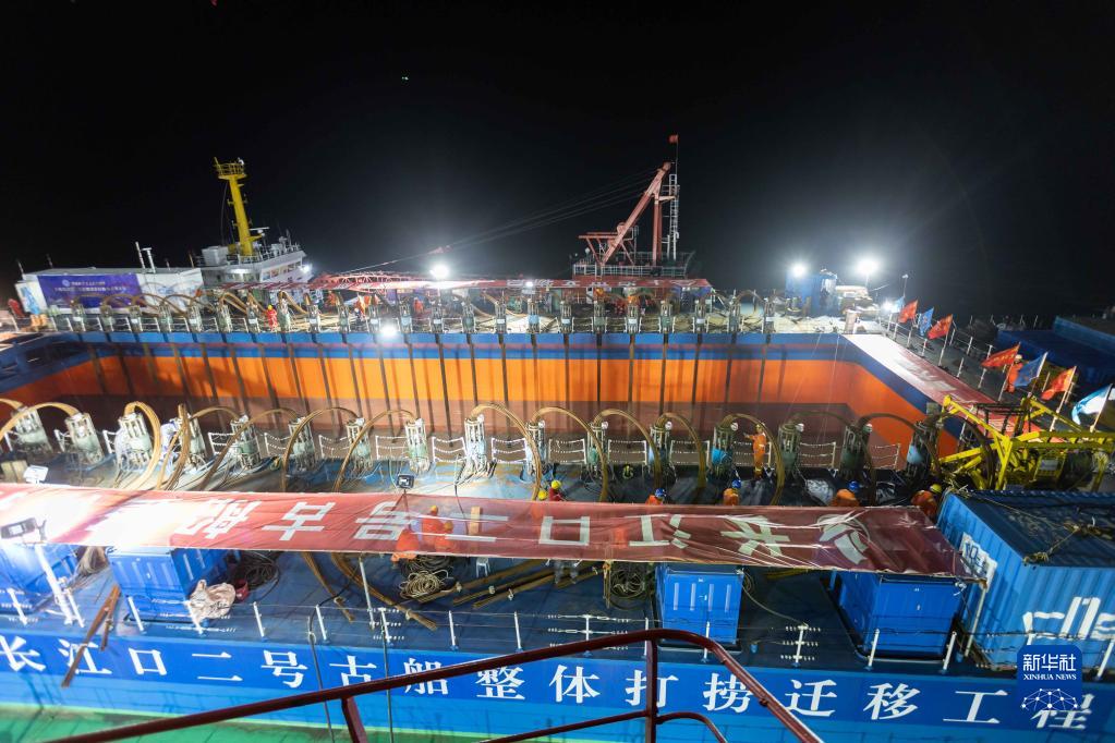 采用世界首創(chuàng )的“弧形梁非接觸文物整體遷移技術(shù)”, 我國迄今水下考古發(fā)現的體量最大的木質(zhì)沉船——長(cháng)江口二號古船21日在長(cháng)江口水域成功實(shí)施整體打撈。