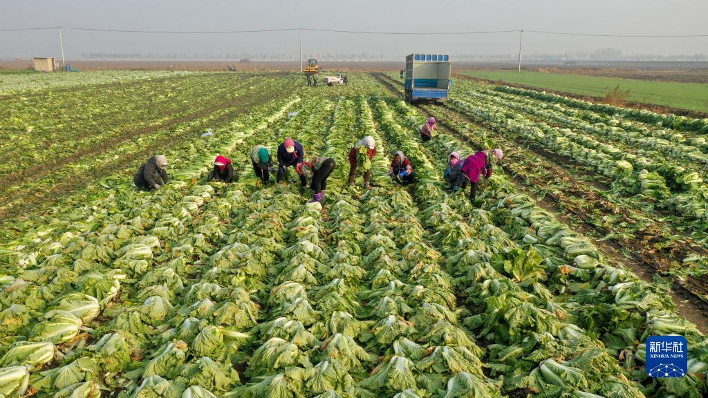 11月21日,河北省唐山市豐南區岔河鎮楊義口頭村農民在田間收獲大白菜。