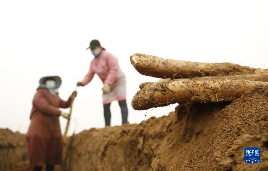 11月21日,河北省邢臺市南和區賈宋鎮單杜科村農民在采收山藥。