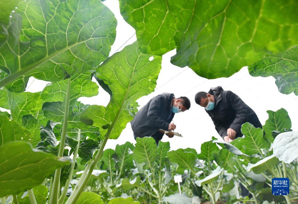 11月20日,在河北省石家莊市欒城區京蔬農業(yè)種植基地,科研人員在記錄觀(guān)察西蘭花特性。
