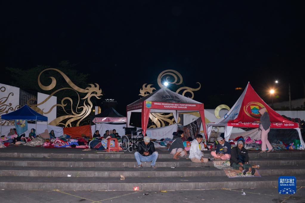 11月22日凌晨,在印度尼西亞西爪哇省展玉地區,受地震影響的人們在戶(hù)外休息。