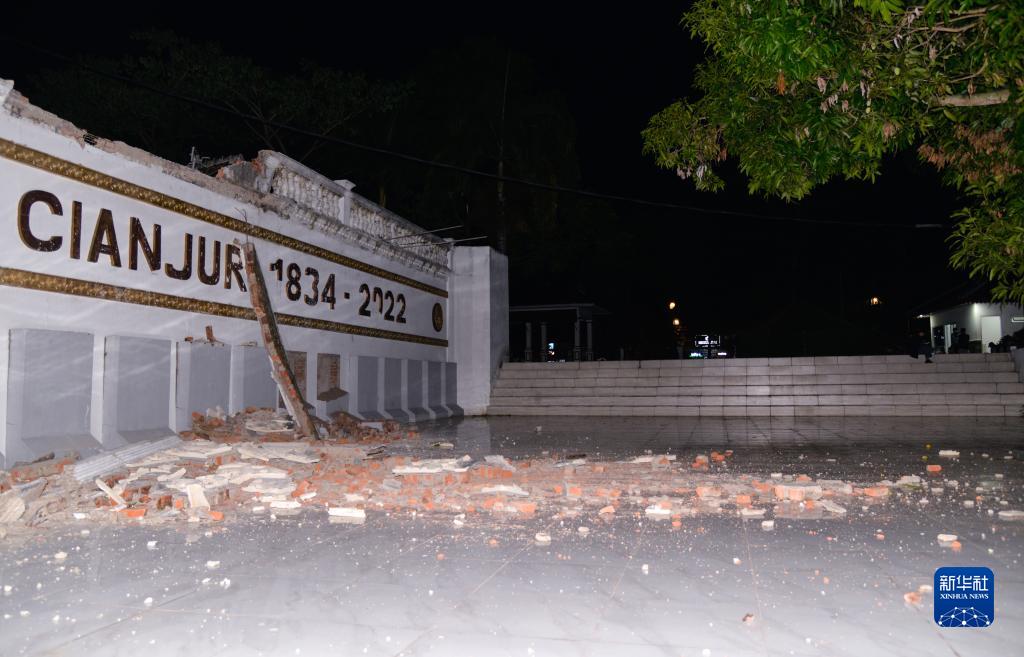 這是11月21日在印度尼西亞西爪哇省展玉地區拍攝的地震損壞的建筑。