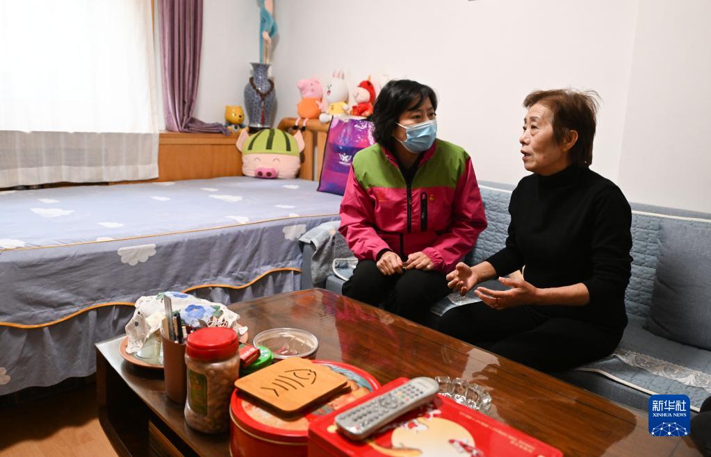 在天津市河西區越秀路街道港云里社區,社區書(shū)記、居委會(huì )主任孫茜(左)走訪(fǎng)居民家時(shí)詢(xún)問(wèn)情況(11月18日攝)。