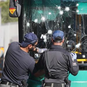 11月23日,以色列警察在耶路撒冷的一處爆炸現場(chǎng)調查。