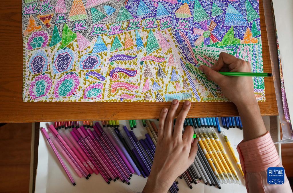 辛格在位于天津市津南區的家中進(jìn)行繪畫(huà)創(chuàng )作(11月22日攝)。