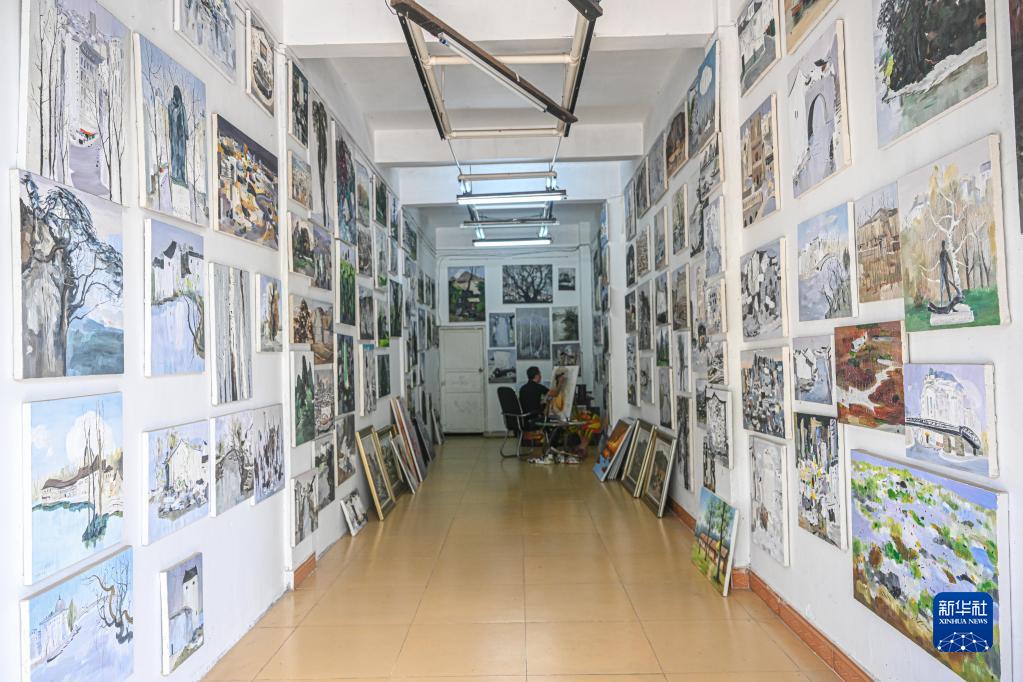 11月23日在海南省屯昌縣油畫(huà)步行街拍攝的一家畫(huà)廊。