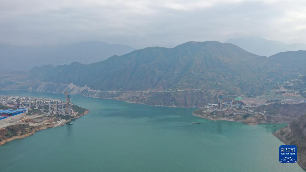這是11月23日拍攝的卡哈洛金沙江大橋施工現場(chǎng)(無(wú)人機照片)。