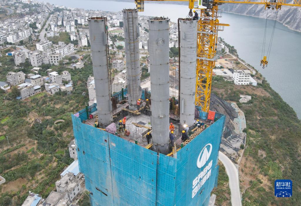這是11月23日拍攝的卡哈洛金沙江大橋施工現場(chǎng)(無(wú)人機照片)。