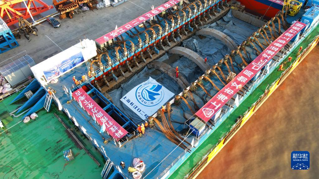 當日,在上海橫沙島的橫沙碼頭,“奮力”輪整裝待發(fā)。它“懷抱”著(zhù)長(cháng)江口二號古船,即將駛往位于上海楊浦濱江的上海船廠(chǎng)舊址1號船塢。長(cháng)江口二號古船將在黃浦江畔“安家”。