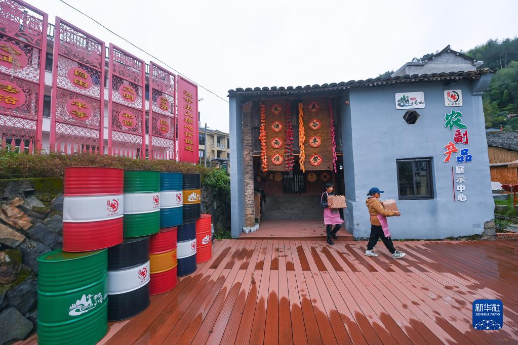 11月24日,村民在浙江省麗水市青田縣小舟山鄉黃員平村用于加工、銷(xiāo)售村里特色農產(chǎn)品的共富工坊忙碌。