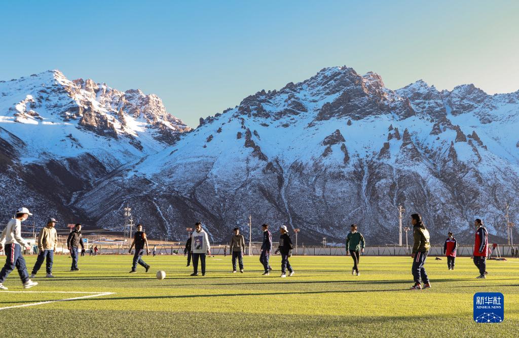 西藏那曲市嘉黎縣中學(xué)的學(xué)生們在踢足球(11月23日攝)。