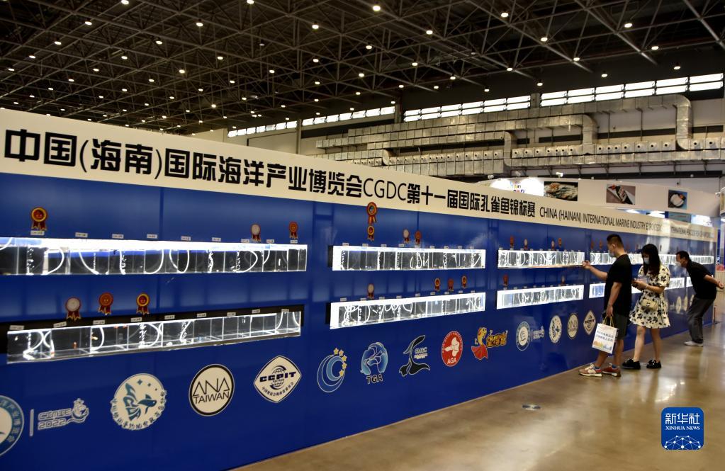 11月25日,觀(guān)眾在2022年中國(海南)國際海洋產(chǎn)業(yè)博覽會(huì )上觀(guān)賞孔雀魚(yú)。