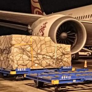 11月24日,??诿捞m國際機場(chǎng)的工作人員在停機坪裝運貨物。