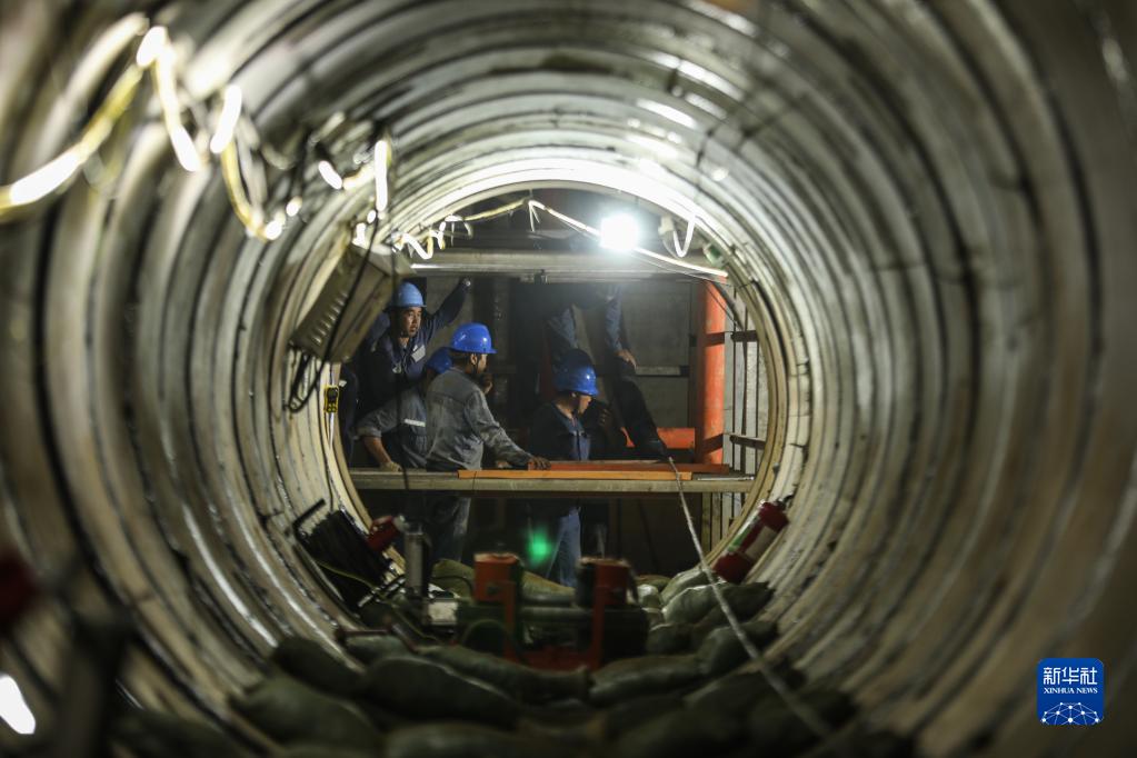 南方電網(wǎng)公司項目人員在粵澳聯(lián)網(wǎng)220千伏第三通道電纜管廊內進(jìn)行施工作業(yè)(2019年5月13日攝)。