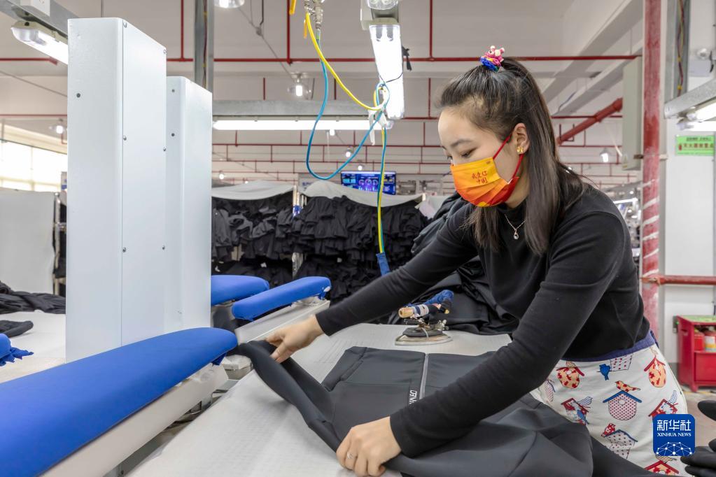 11月25日,員工在貴州省黔西市岔白工業(yè)園區一家服飾公司生產(chǎn)車(chē)間加工服裝。