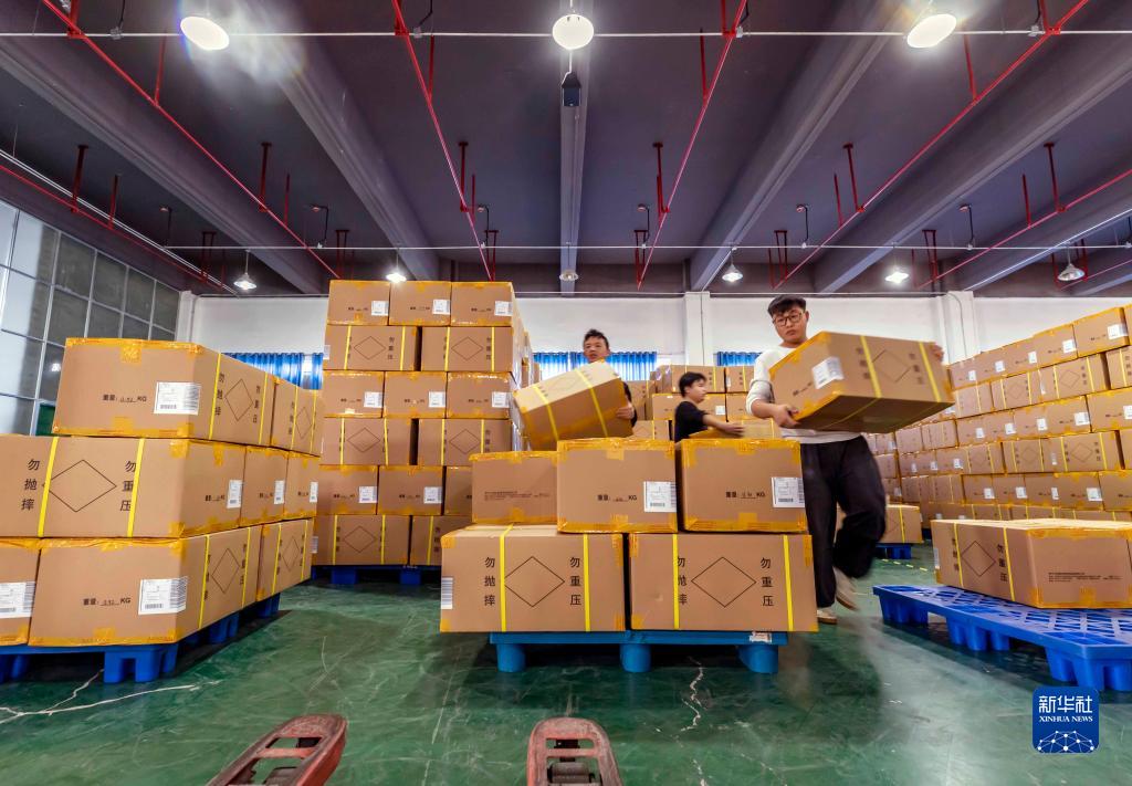 11月25日,員工在貴州省黔西市岔白工業(yè)園區一家服飾公司成品倉庫分擺成品。