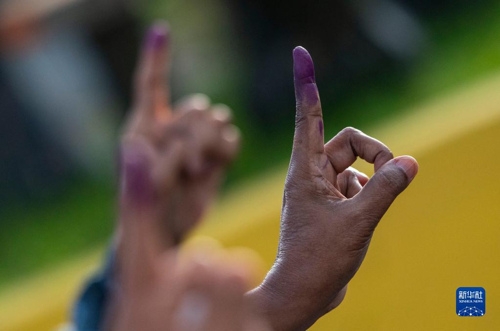 11月19日,在馬來(lái)西亞檳榔嶼州,選民投票后展示蘸有墨水的手指。