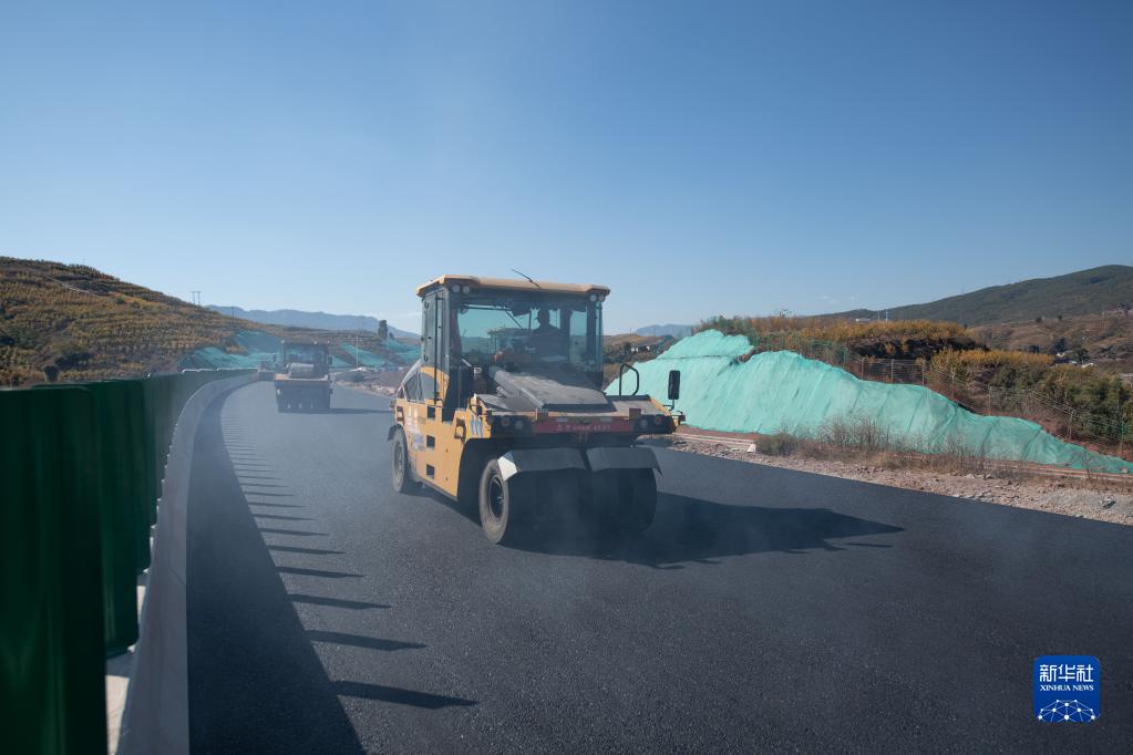 11月25日,施工人員在四川沿江高速會(huì )東南—會(huì )理南閣互通先期通車(chē)段施工。