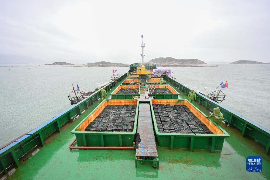 這是11月25日在福州連江縣苔菉鎮后灣海域拍攝的鮑魚(yú)運輸船。