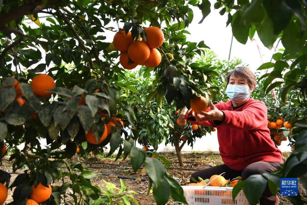 11月26日,村民在肥西縣銘傳鄉王井社區特色蔬果產(chǎn)業(yè)園內采摘“紅美人”柑橘。