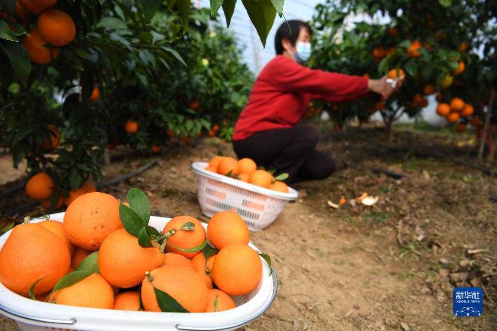11月26日,村民在肥西縣銘傳鄉王井社區特色蔬果產(chǎn)業(yè)園內采摘“紅美人”柑橘。