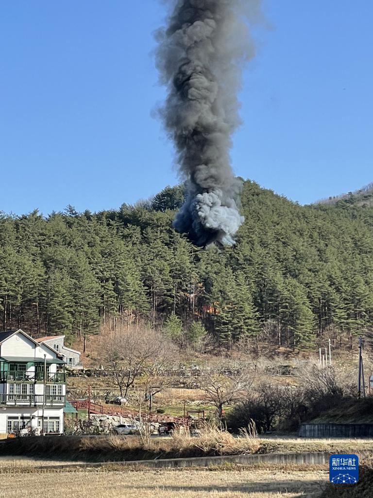 11月27日,在韓國江原道襄陽(yáng)郡,直升機墜毀現場(chǎng)冒起濃煙。