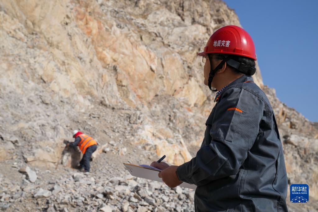 在天津市薊州區,天津華北地質(zhì)勘查局地災防治工作組成員記錄一處廢棄礦山山體坡面坡度測量數據(11月25日攝)。