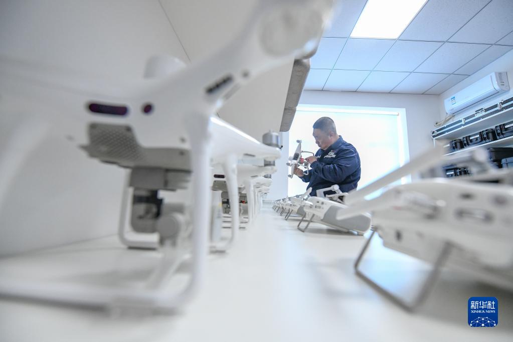 11月27日,于洋在智能巡檢中心維護用于電力設備巡檢的無(wú)人機。