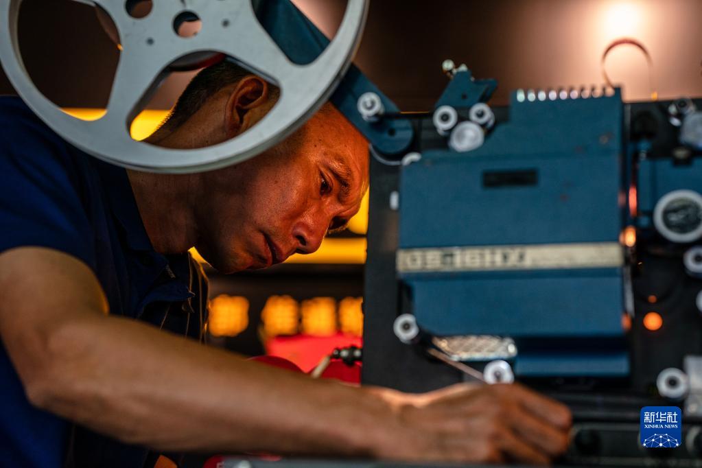 在怒江州瀘水市,楊明金修理膠片放映機(2022年10月31日攝)。