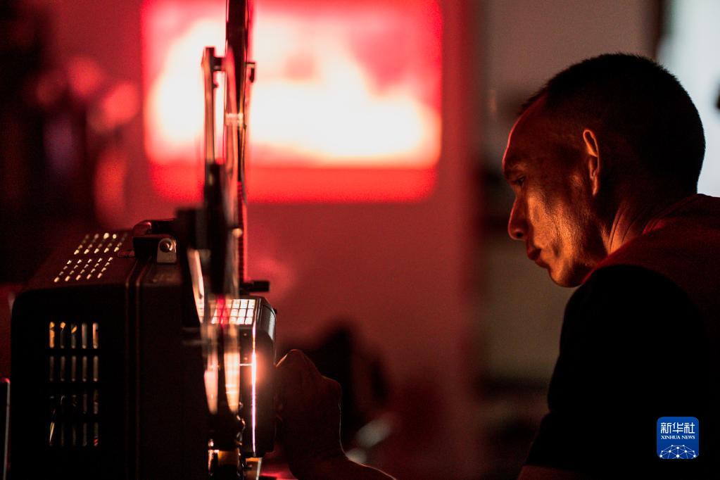 在怒江州瀘水市,楊明金調試膠片放映機(2022年10月22日攝)。