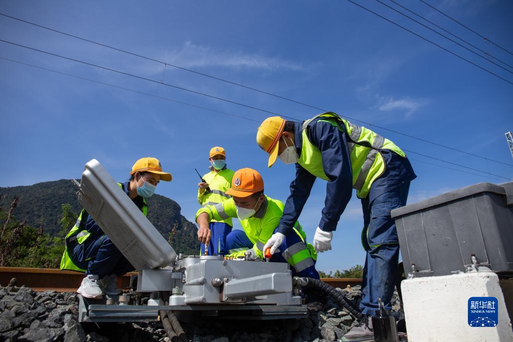 12月1日,在老撾瑯勃拉邦,中老鐵路雙方員工共同維護線(xiàn)路。