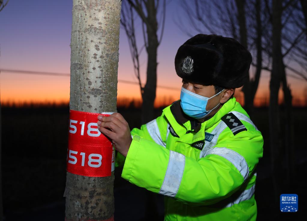 12月1日,沈陽(yáng)市公安局交通警察局蘇家屯大隊交警檢查反光條粘貼情況。
