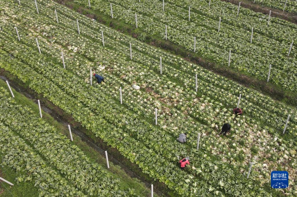 近日,受寒潮天氣影響,安徽省合肥市氣溫下降。合肥市肥西縣高店鎮蔬菜種植基地的菜農們加緊采收蔬菜,供應市場(chǎng)。
