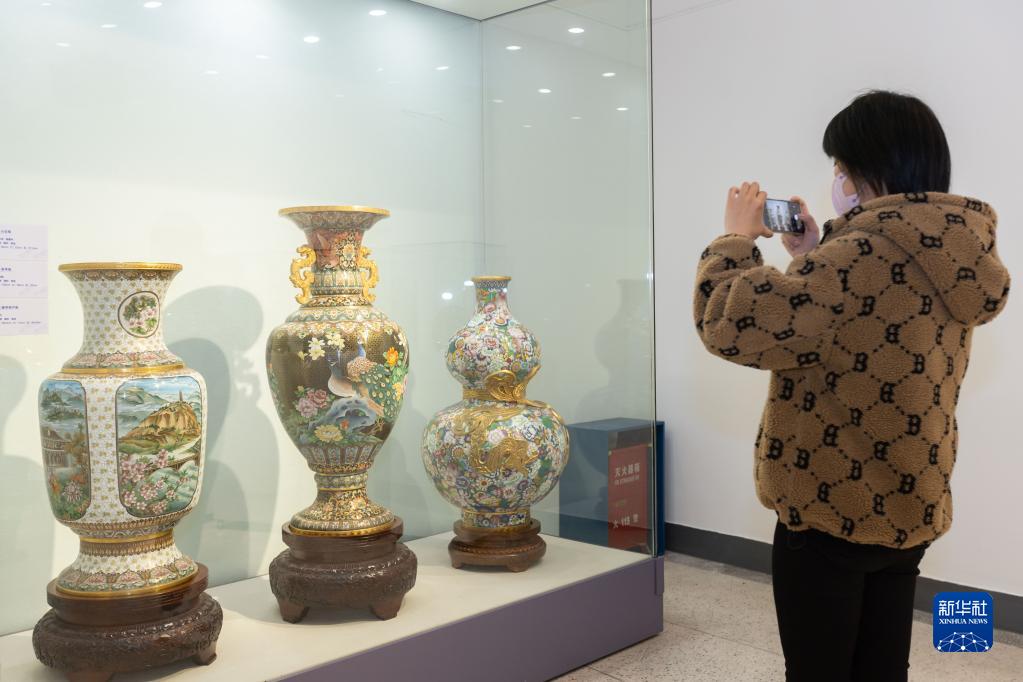 12月3日,觀(guān)眾在上海藝術(shù)品博物館參觀(guān)拍攝景泰藍展品。