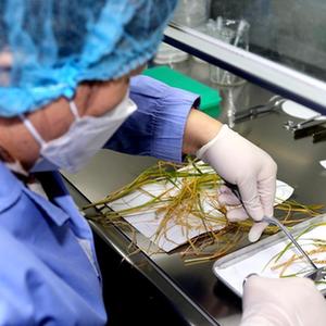 12月5日,在中科院空間應用中心生物實(shí)驗室,中科院分子植物科學(xué)卓越創(chuàng )新中心鄭慧瓊研究員處理從太空歸來(lái)的水稻樣品。