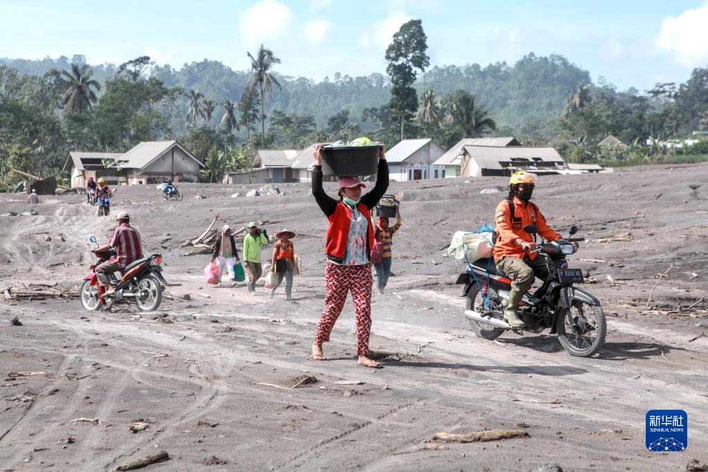 12月6日,在印度尼西亞?wèn)|爪哇省盧馬姜縣松伯武盧村,人們攜帶物品撤離受火山噴發(fā)影響的區域。