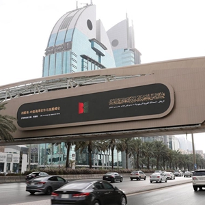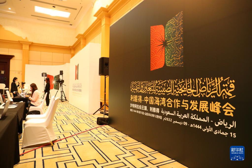 這是12月7日在沙特阿拉伯首都利雅得的新聞媒體中心拍攝的關(guān)于“中國-海灣阿拉伯國家合作委員會(huì )峰會(huì )”的宣傳板。