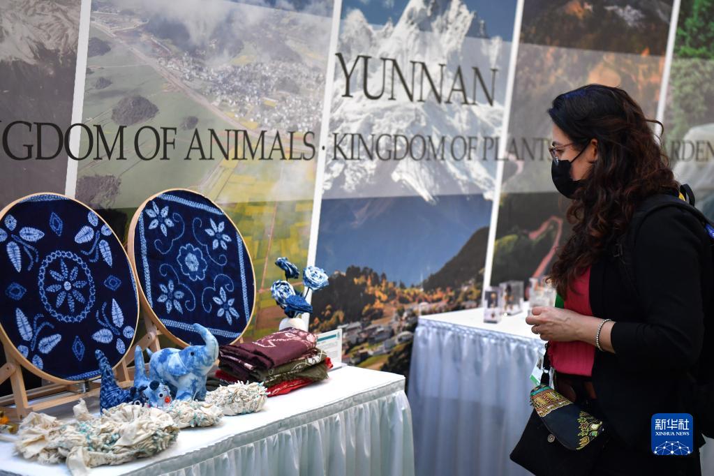12月7日,一名與會(huì )者在加拿大蒙特利爾《生物多樣性公約》第十五次締約方大會(huì )(COP15)第二階段會(huì )議中國角參觀(guān)。