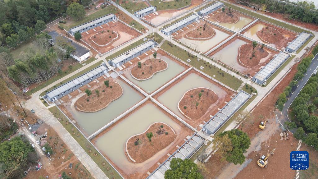 11月30日在安徽揚子鱷國家級自然保護區夏渡片區拍攝的基本竣工的揚子鱷人工繁育設施升級改造項目主體工程(無(wú)人機照片)。