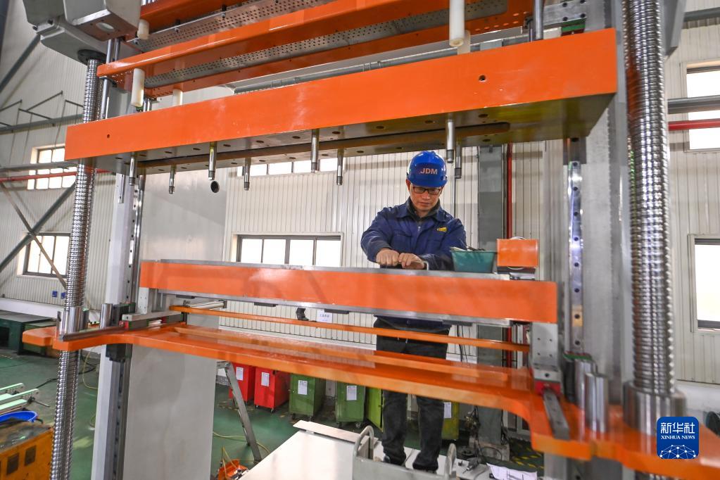 12月9日,工人在寧波精達成形裝備股份有限公司車(chē)間組裝一臺出口海外的機械設備。