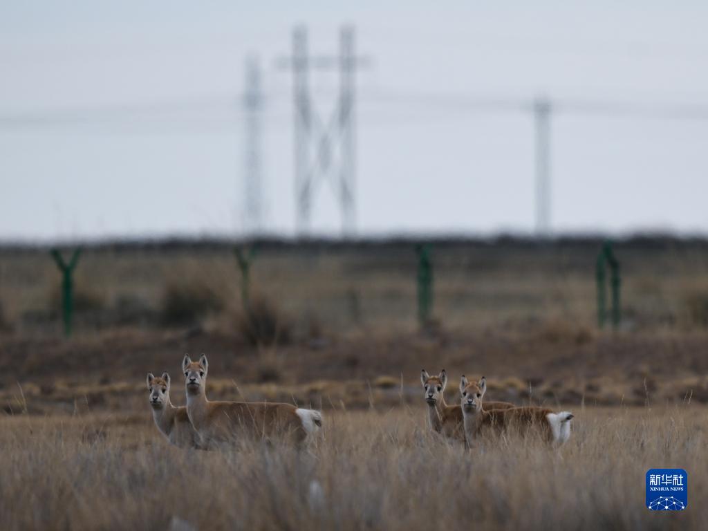 12月9日,幾只普氏原羚在青海湖邊的草場(chǎng)上活動(dòng)。