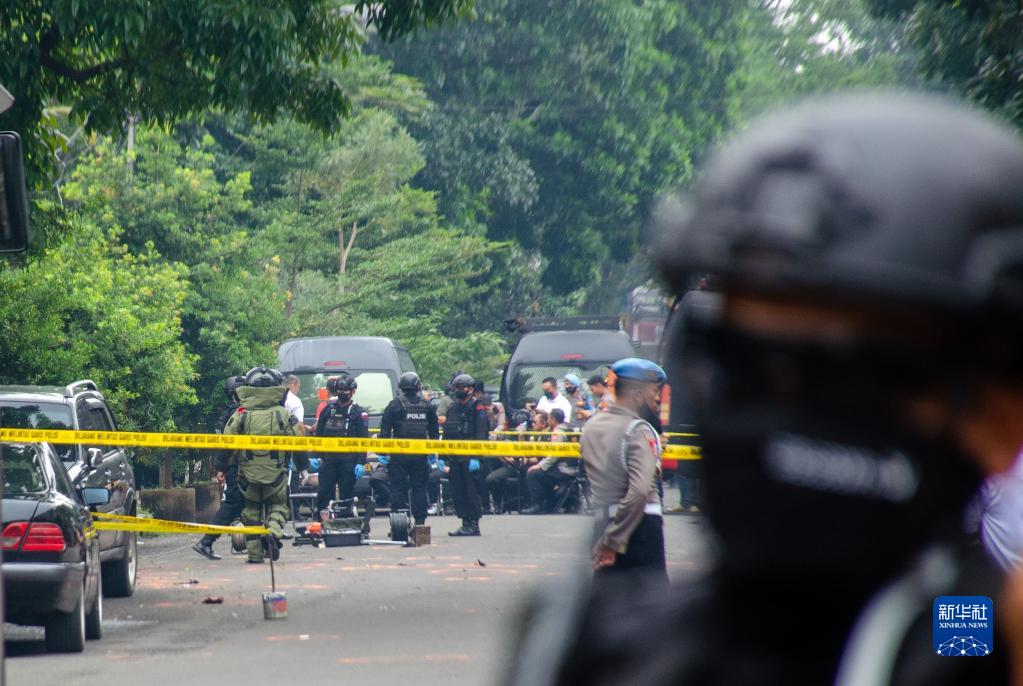 12月7日,警察在印度尼西亞萬(wàn)隆的事發(fā)警察局附近站崗。