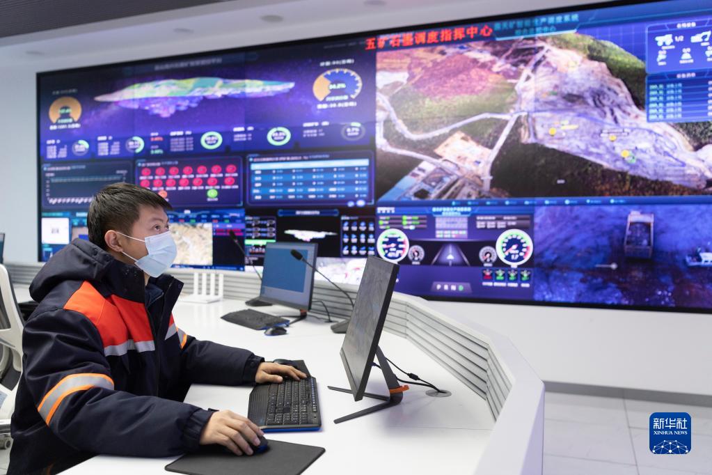 在鶴崗市蘿北縣,中國五礦集團(黑龍江)石墨產(chǎn)業(yè)有限公司的工作人員在調度指揮中心內作業(yè)(12月9日攝)。