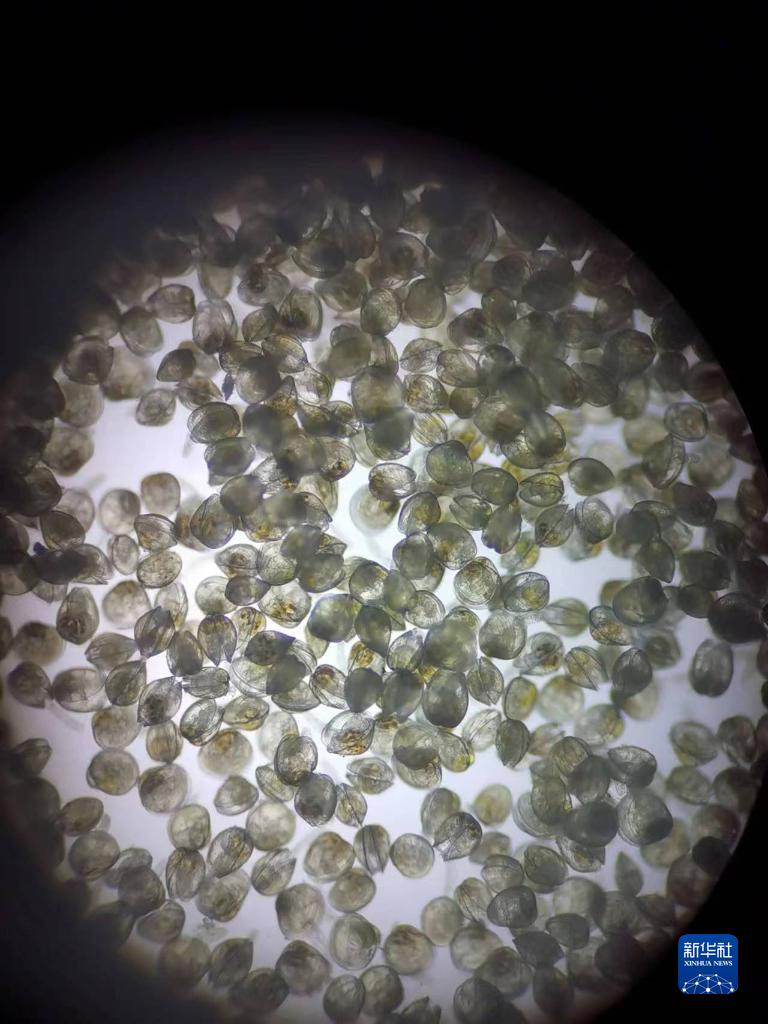 這是12月9日在莆田市秀嶼區平海鎮的一家貝類(lèi)育苗場(chǎng)拍攝的花蛤苗種(顯微鏡照片)。