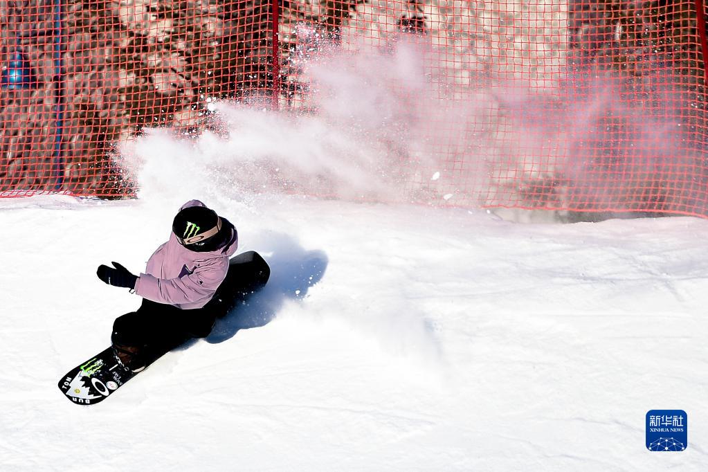 北京冬奧會(huì )單板滑雪男子大跳臺冠軍蘇翊鳴滑行在V-PARK地形公園內(12月10日攝)。