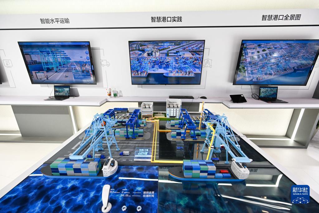 這是12月12日在首屆全球數字貿易博覽會(huì )現場(chǎng)拍攝的智慧港口系統。