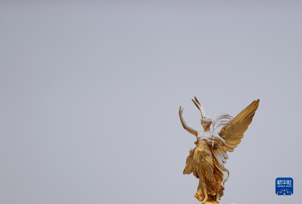 這是12月12日在英國倫敦拍攝的白金漢宮前的雕塑。