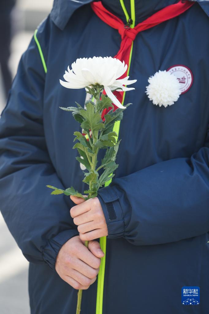 12月13日,學(xué)生在侵華日軍南京大屠殺中山碼頭遇難同胞紀念碑前悼念。