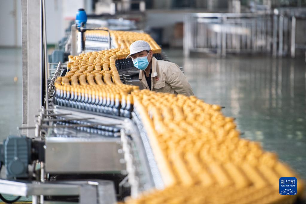 12月13日,在加加食品集團股份有限公司醬油生產(chǎn)車(chē)間,工作人員在檢查醬油品質(zhì)。