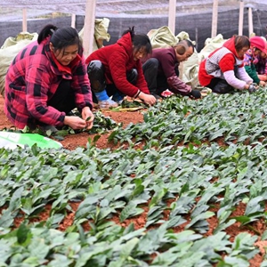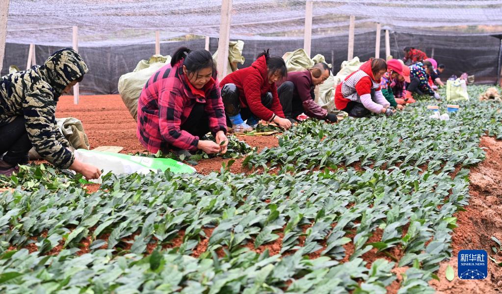冬日,在貴州省黔東南苗族侗族自治州丹寨縣興仁鎮茶葉育苗基地,村民搶抓農時(shí),扦插從浙江省安吉縣運抵的茶苗,為今冬明春移栽提供充足保障。據悉,丹寨縣已建茶園12.19萬(wàn)畝,茶產(chǎn)業(yè)已成為當地助力鄉村振興的重要產(chǎn)業(yè)。新華社記者 楊楹 攝
